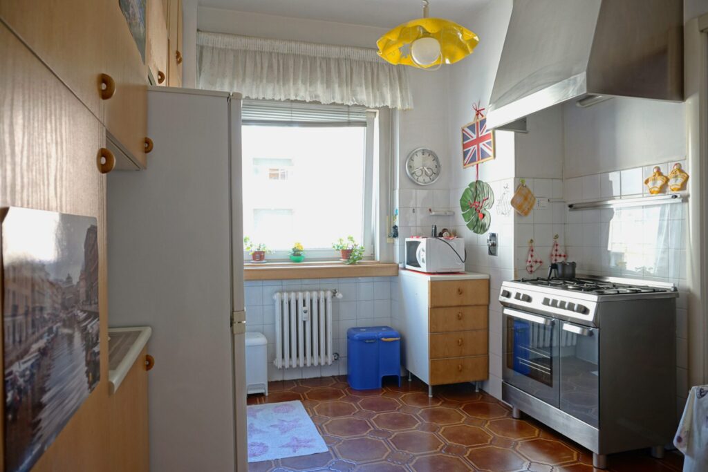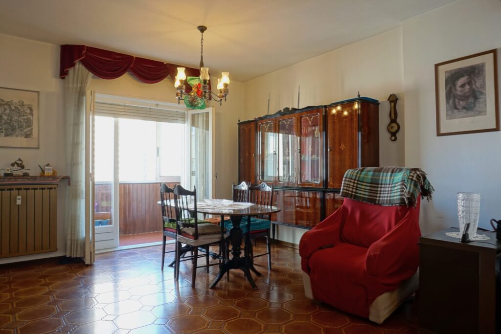 BARE OWNERSHIP proposal of a beautiful apartment on the very high floor (ninth). Building without architectural barriers, the skyscraper is well-kept and finished. We are in Piazza Foraggi, the property is large, suitable for a family, consists of over 90 square meters. including a veranda balcony and external storage room. Beautiful living room, eat-in kitchen, two double bedrooms, bathroom, internal storage room. Panoramic view of the city with a glimpse of the sea. The usufructuary is 89 years old.