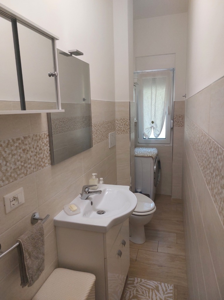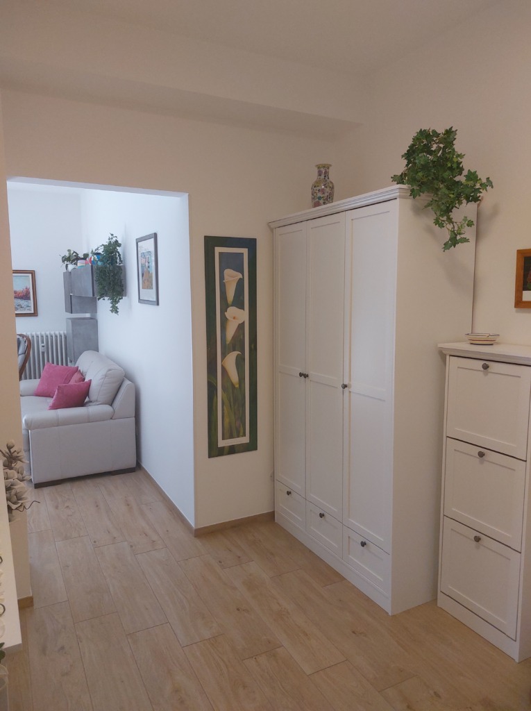 Apartment totally renovated in 2020 with quality and tasteful materials and coatings. Certified installations, windows, doors, floors, furniture, all new and in perfect condition. Medium floor facing south/east in excellent condominium context, equipped with elevator, whose facades are insulated by thermal coat. The accommodation is sold furnished and consists of large entrance hall with wardrobe closet, living room connected to the kitchenette equipped with all appliances, small terrace facing the Bobbio Theater, two double bedrooms, large windowed bathroom with shower and 80-liter Ariston Velis boiler. White PVC windows and doors with new shutters and mosquito nets. To top it off there is also a windowed basement.