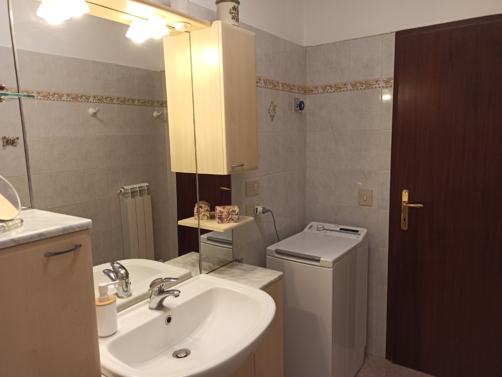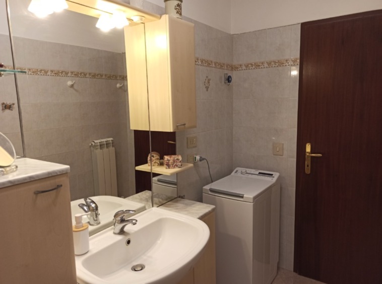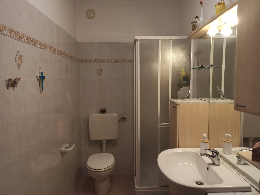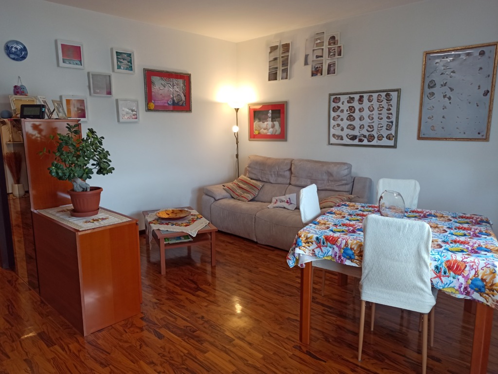 NUDA PROPERTY Three-room apartment in perfect condition without architectural barriers. Located on the second floor equipped with an elevator in a building from the ’75s with recent energy upgrading through Superbonus 110%. The apartment in fact presents an APE of class B. Direct entrance into the spacious and very bright living room with access to the livable terrace exposed entirely to the south on the green condominium. Liveable kitchen remodeled in 2010 and complete with all appliances. 2 bathrooms, of which one complete windowed with bathtub and one with shower and washing machine area. 2 rooms, including one double and one single. The flooring in the living area is in fine olive palettes, the kitchen and bathrooms are in stoneware tiles and the rooms in classic parquet. There is a security door, the interior doors are wooden, new aluminum window frames replaced in 2023, blackout regulated by blinds, and there is an air conditioner. Heating is independent with boiler replaced in 2022. Centralized water. Included in the price is a convenient parking space with basement, adjacent to the front door. The condominium includes a condominium green area and parking for a second car or for any guests. The usufructuaries are 72 and 74 years old.