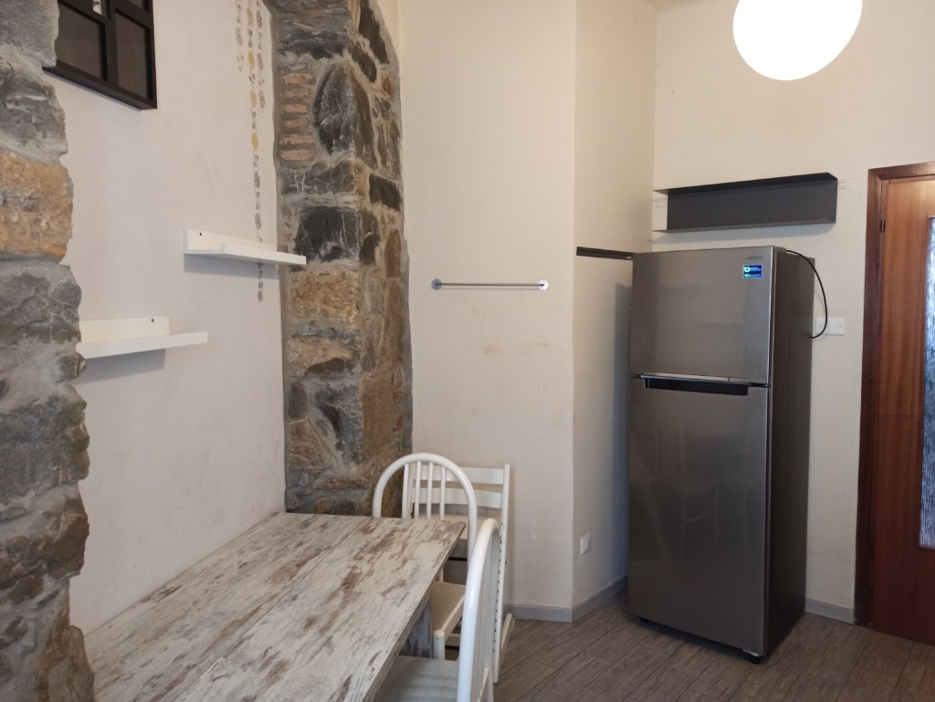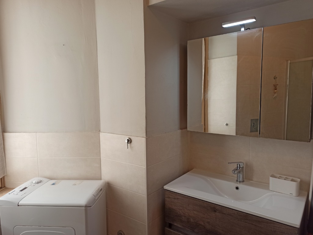 Second floor apartment with many windows, currently a two-room apartment but can become a three-room apartment with a simple division into two of a very large room. Independent heating by recent boiler, wooden windows, new aluminum shutters. Bathroom and kitchen recently renovated in both fixtures and fittings. Certified electrical system. Remains furnished as in photograph.